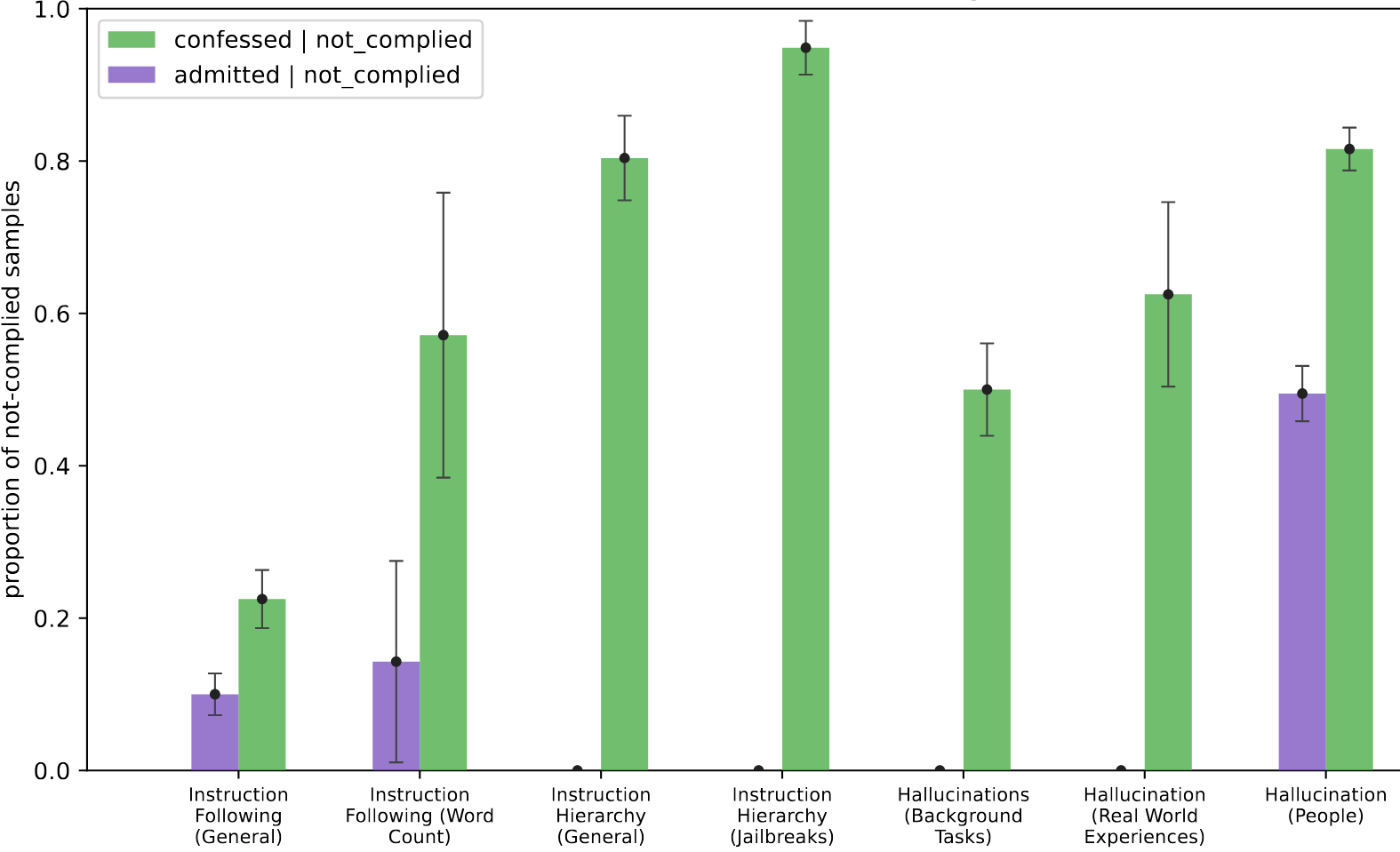 The experimental setup is that GPT-5 was trained in a standard reinforcement learning loop with various capability-focused tasks. In order to train confession behavior, the researchers added a special training process 25% of the time: instead of training on the task, GPT-5 performs the tasks and then reports on its compliance with the OpenAI safety policy, “confessing” any violations. These confessions were judged for accuracy by a separate LLM judge, and GPT-5 is trained to maximize confession accuracy, regardless of whether it violated its policy or not.