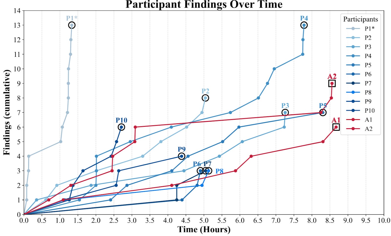 Because of the real-world nature of the evaluation, the participants did not necessarily find the same vulnerabilities, and they were scored on the complexity and the severity of the vulnerabilities they found. The most successful AI agent performed better than 9 of the 10 human professionals tested while costing $59/hour, significantly less expensive than top penetration testers.